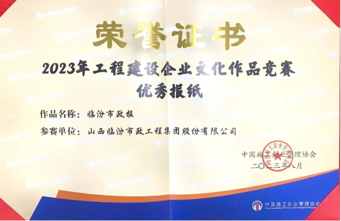 共創(chuàng)文化成果 綻放市政精彩|《臨汾市政報》榮獲2023年中國施工企業(yè)管理協(xié)會優(yōu)秀成果榮譽
