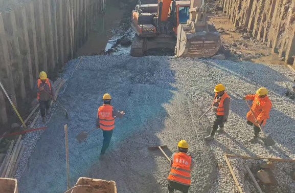 截至目前,三個(gè)基坑的基礎(chǔ)已處理完畢,墊層澆筑完成,即將開始底板的防水處理。計(jì)劃于春節(jié)前將三個(gè)基坑的底板澆筑完成,鋼板樁全部拔除。