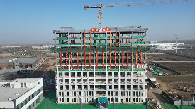 裝配式建造顯成效 I 臨汾開發(fā)區(qū)科技創(chuàng)新基地二期(A區(qū))宿舍樓封頂
