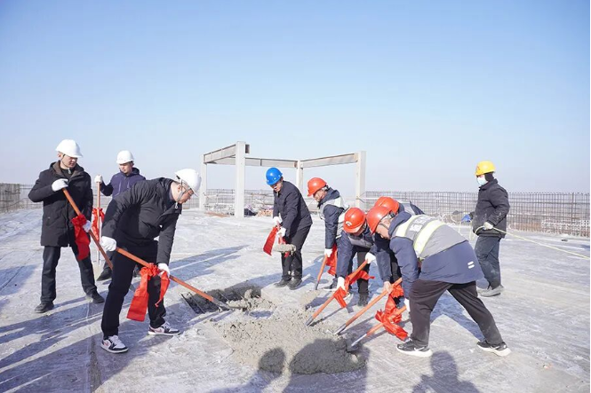 封頂儀式現(xiàn)場喜慶莊重,建設(shè)單位、監(jiān)理單位及項(xiàng)目部全體建設(shè)者共同見證了這一榮耀時(shí)刻。與會(huì)領(lǐng)導(dǎo)協(xié)同執(zhí)鏟,完成封頂作業(yè),宣告項(xiàng)目正式轉(zhuǎn)入機(jī)電安裝與裝飾裝修新階段。